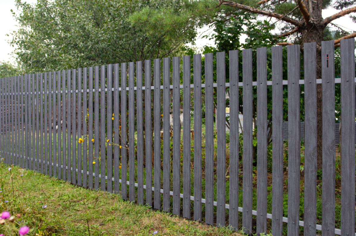 Металлический штакетник — это тип ограждения, состоящий из металлических панелей шириной 100–128 мм и имеющих различные варианты профиля.