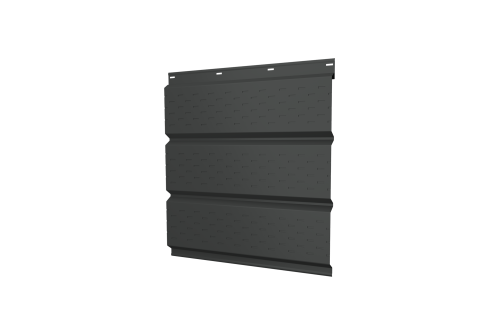 Описание товара: "Софит металлический полная перфорация 0,5 GreenCoat Pural BT, matt с пленкой RAL 7016 антрацитово-серый"
