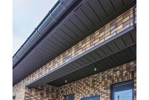 Водосток Grand Line PE 125×90 обладает водопропускной способностью на 25% больше, чем у других производителей водосточных систем с полукруглым желобом. Такая производительность обеспечена увеличенной глубиной желоба.
